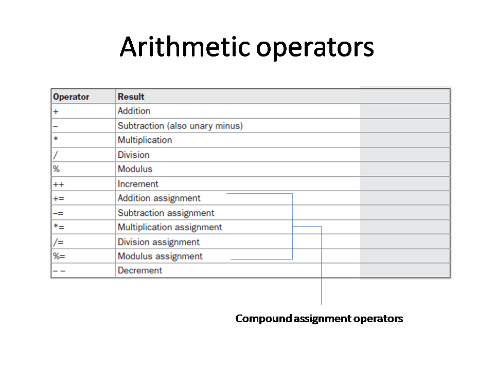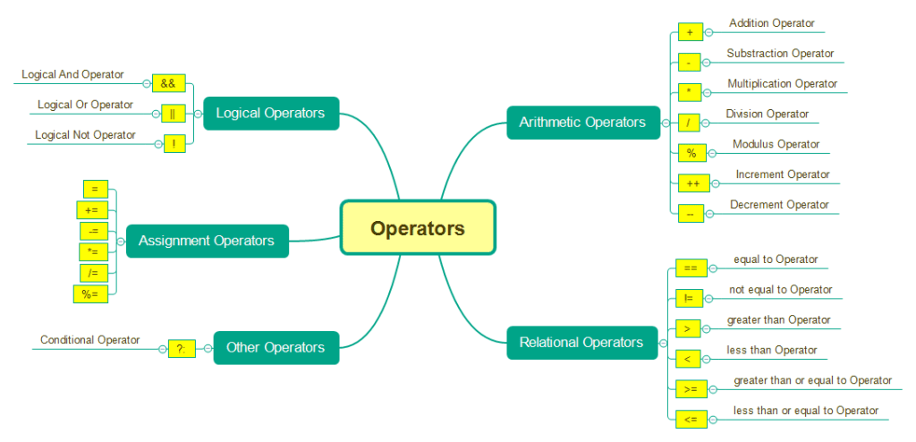 Expression: Combination of operands and operators. eg: a + b, a > b , a == b , a – b.
